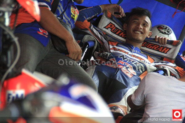 OtomotifZone.com – Wonogiri. Sulung Giwa sudah dipastikan bermain Indoprix tahun depan. Sempat menjadi teka-teki kata Sulung ia akan ikut ke team lamanya, Yamaha Ridlatama. Namun saat bersama OtomotifZone.com di Sentul beberapa waktu lalu bersama Hawadis, Ade Taruna, dan Sulung Giwa terlihat ada pembicaraan serius namun terlihat santai. Ada rencana perekrutan mungkin? “Rencana sih gitu. Biar dia bisa main ke tingkat Asia,” ungkap Hawadis. Sebagai warming-up Sulung diajak bermain Indoprix Sekayu. Lho, kan dia masih terikat kontrak dengan Putra Anugrah main di Motoprix ? “Iya om. Sudah ijin ikut Yamaha TJM,” ucap Pak Fritz Yohanes, pemilik team Putra Anugrah Racing Team. Adaptasi buat 2015..