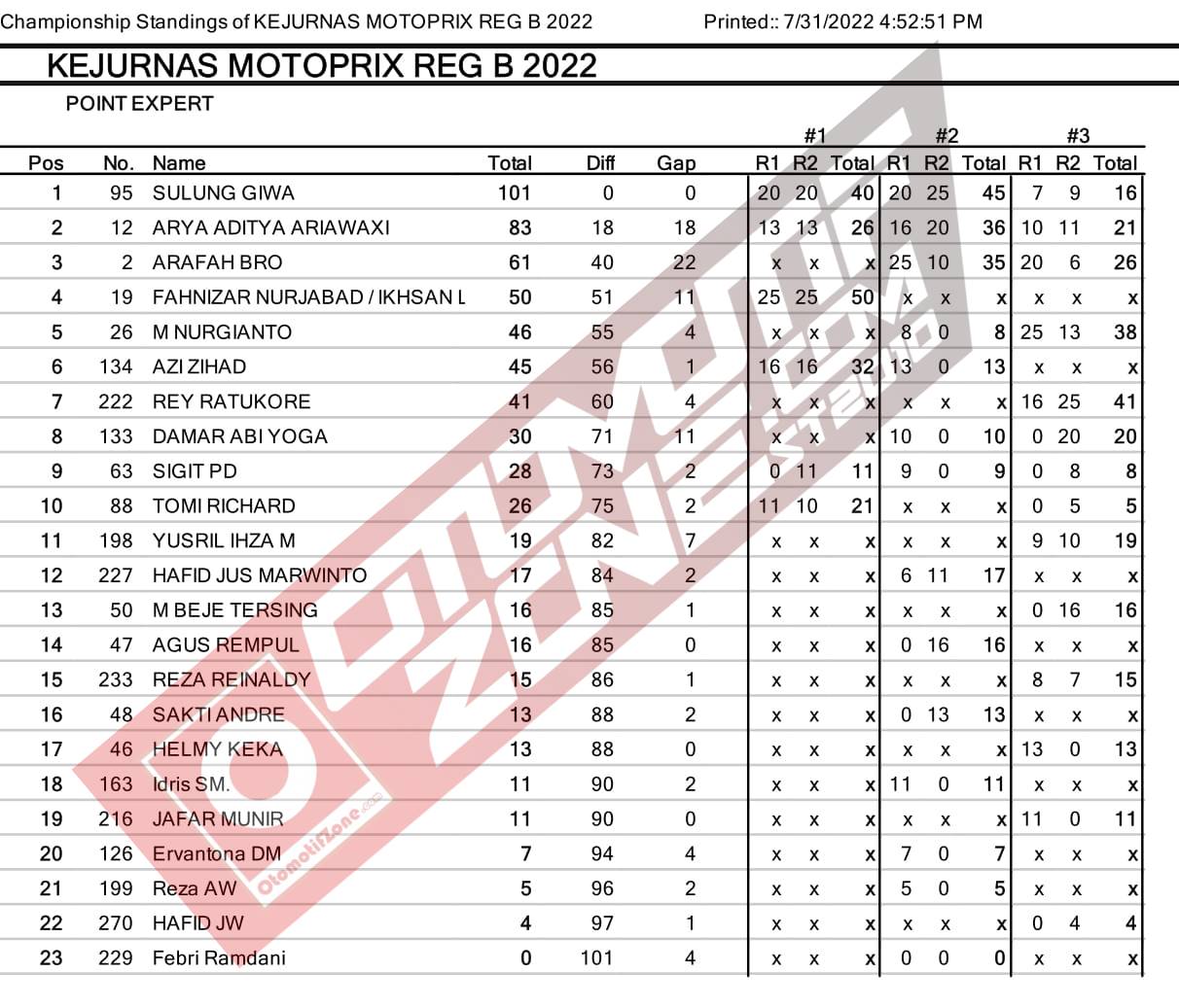 Agar lebih jelas berikut standing point sementara Kejurnas Motoprix Region B putaran B 2022: