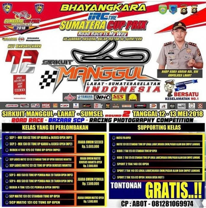 Otomotifzone.com – Jakarta. Sumatera Cup Prix Seri 2 akan diselenggarakan (12-13/5) di Sirkuit Manggul Lahat , Sumatera Selatan. Akan banyak hadiah yang diberikan oleh penyelenggara. Tidak hanya berikan hadiah kepada  setiap juaranya, mereka juga sudah siapkan beberapa hiburan selain balap kepada penonton yang hadir. Para penonton juga bisa mengikuti lomba yang diselenggarakan panitia.