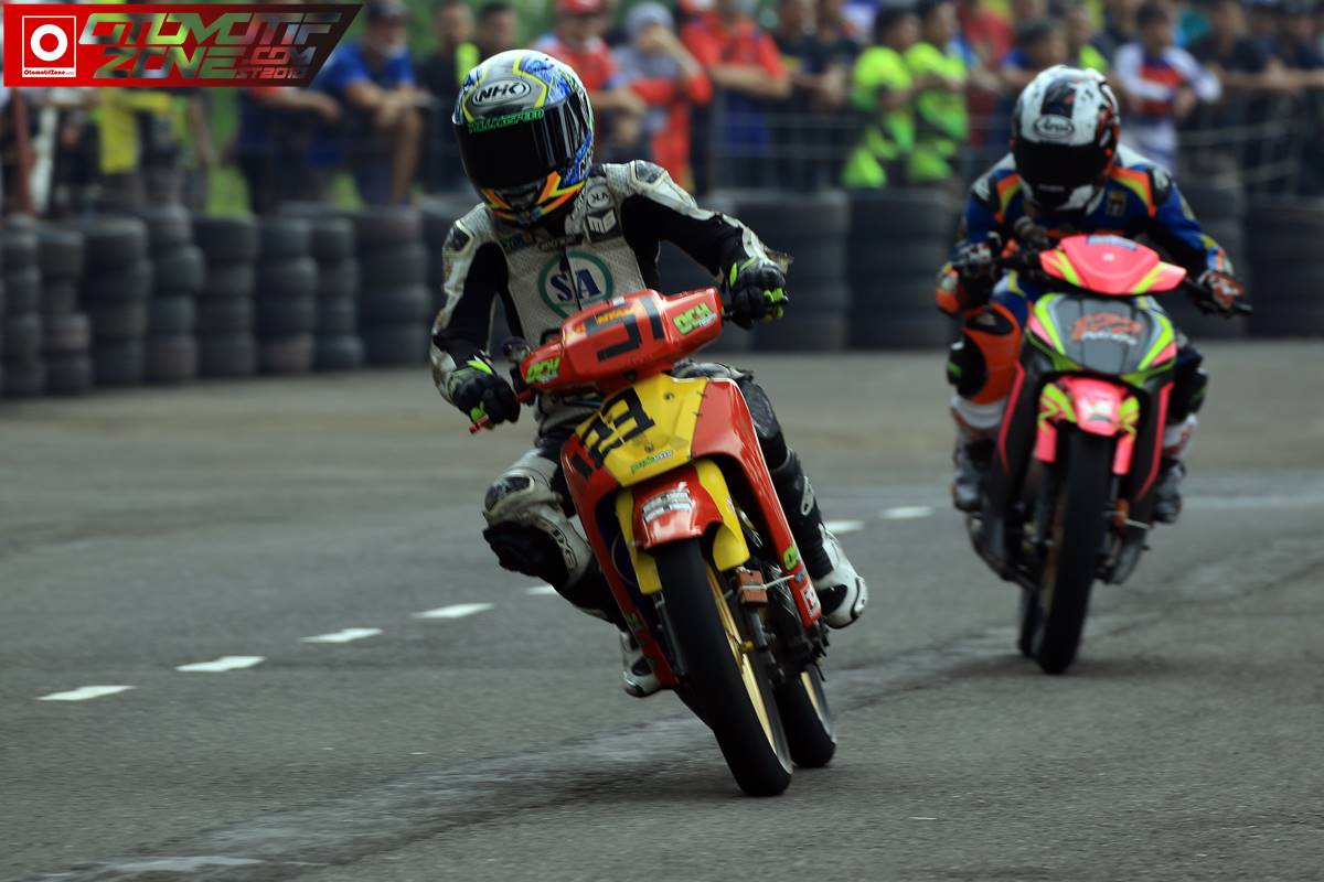 “ Seru sekali pertarungan tadi. Saya tidak bisa santai karena saya harus terus push sampai akhir lap. Karena Putra PA terus tempel ketat saya sampai bendera finish berkibar dari start. Meski saya tadi di posisi kedua dan Putra ke tiga saya terus ditempelnya. Saat pebalap pertama terjatuh saya harus tetap gaspol karena Putra tempel saya terus,” ujar Kencana Darma langsung ditemui OtomotifZone.com.