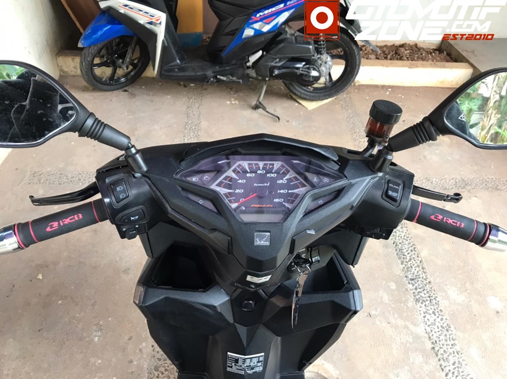Honda Vario 150cc Ireng Dop ini, menggunakan Master Rem RCB S1, Handle Kiri beserta master RCB E2, Kaliper RCB S Series + Kampas RCB, Shockbreaker RCB Tipe MB2, dan Handgrip HG55.