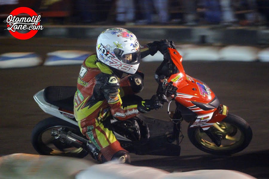” Dari aku ketinggalan rombongan sampe di belakang Kintan, aku terus berusaha nyari celah buat masuk. Sempat di R trakhir aku masuk tapi motor aku tidak kuat ke atasnya. Dan alhamdulillah di R4 ada celah dikit aku masuklah. Kintan lakukan kesalah sedikit, tapi aku paksa masuk dan akhirnya dapat,” ujar Deple langsung kepada OtomotifZone.com.