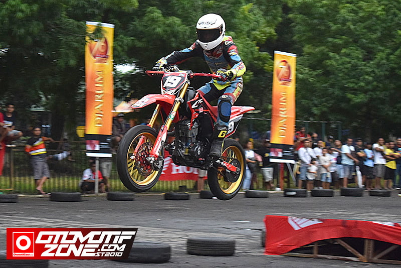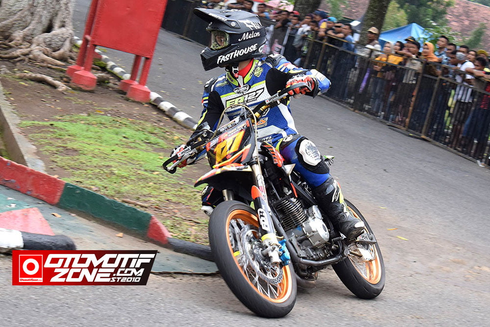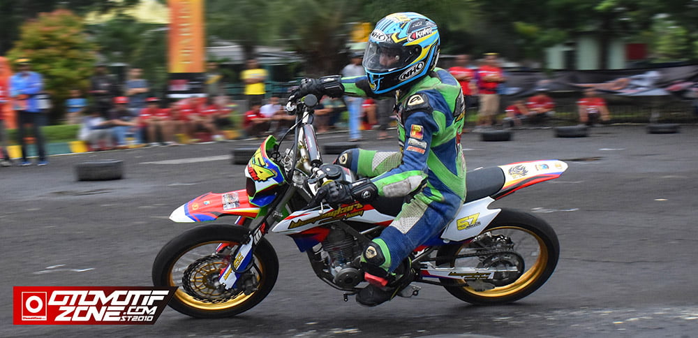 OtomotifZone.com – Jember . Ajang Supermoto Open Championship 2020 , yang digelar di pelataran markas Secaba Rindam V / Brawijaya minggu kemarin (1/3) menjadi suatu eksistensi komunitas tersendiri. Ide Kreatif ini sebenarnya telah tercetus jauh – jauh hari akan menggelarnya ajang kompetisi Supermoto di Jawatimur. Hanya Frangky Laurent masih menghabiskan seri kejuaraan Roadrace di tahun 2019 lalu dan Supermoto menjadi kelas tambahannya. ” Tahun 2020 ini Supermoto saya buat kelas utama dan Roadrace menjadi kelas tambahannya, Untuk kartu ijin Start (KIS) bisa pakai KIS Grasstrack atau Motocross. Begitu pula motor – motor yang dipakai adalah motor bebek modifikasi dan sport modifikasi yang layaknya motor Grasstrack ” terang Frangky Laurent penggiat dari Ocean Enterprise