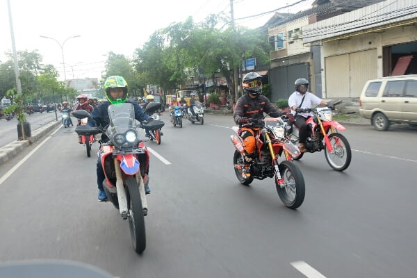 “Di sini kami saling sharing tentang banyak hal, terutama motor dan motor Honda CRF150L yang dapat dimodifikasi menjadi model supermoto, juga kami kasih kesempatan untuk temen-temen komunitas untuk menjajal sensasi berkendara dengan Honda CRF150L,” tambah Mahakarya.