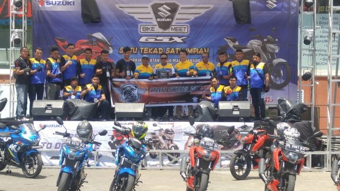 Otomotifzone.com – Manado. PT. Suzuki Indomobil Sales (SIS) bekerja sama dengan Main Dealer motor Suzuki wilayah Sulawesi, PT. Sinar Galesong Mandiri (SGM) menggelar acara Suzuki Bike Meet. Bertempat di Kawasan Mega Mall, Manado menjadi lokasi pertama pelaksanaan rangkaian acara Suzuki Bike Meet. Pada rangkaian kali ini Suzuki Bike Meet rencananya akan diselenggarakan di 7 lokasi dan kota sepanjang penghujung tahun 2017.