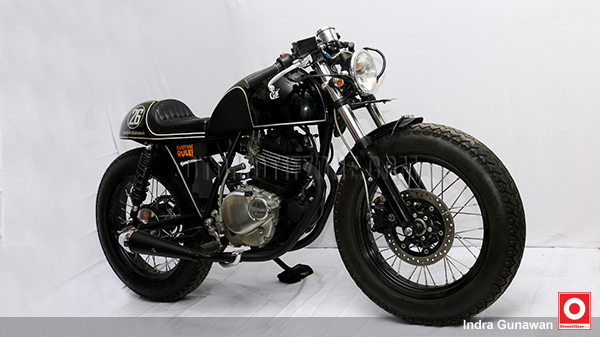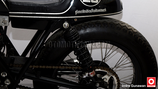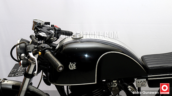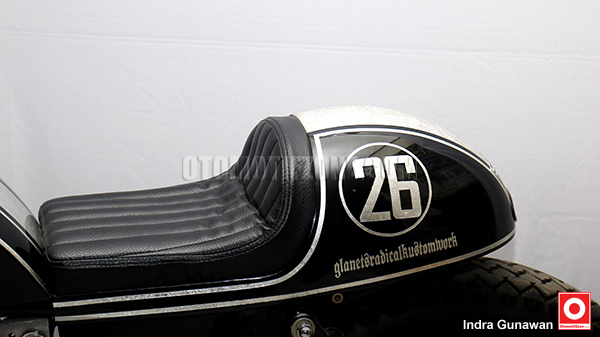 Mulai dari tangki yang didesain membulat kemudian dipapras menyesuaikan dudukan paha penunggang motor agar posisi lebih nyaman saat berkendara. Kemudian, menyesuaikan tema Cafe Racer buntut belakang desainnya dibuat mirip pantat tawon ciri khas cafe racer. Tentunya model jok juga disesuaikan dengan model single seatter.