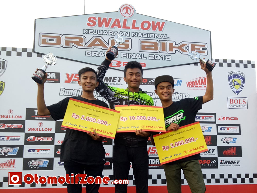 OtomotifZone.com – Surabaya. Di ajang Swallow Kejurnas Drag Bike 2018 yang merupakan Grand Final seri ke 7, mencatat beberapa dragster luar region 2 Jawa sebagai jawaranya. Ini terjadi di sirkuit permanen drag Gelora Bung Tomo Surabaya(2/12).