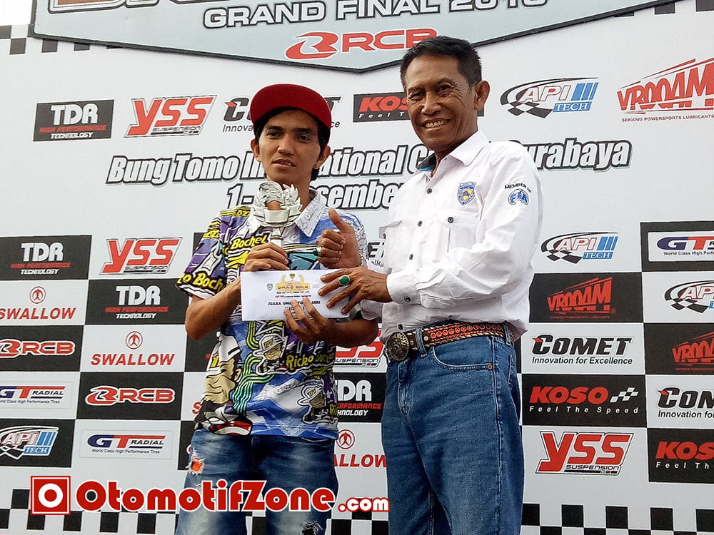 Bagaimana prestasi Dragster Jatim lain yang kini semakin tergilas dengan region lain. Di Grand Final Kejurnas drag bike ini juga sekaligus penobatan jawara kejurprov Dragbike Jatim 2018. Dari hasil standing poin keseluruhan selama 5 seri, Ricko Leonardi berhak akan podium teratas dengan total 52 poin. Padahal tertinggi sebanyak 60 poin diraih Deby AP. Dan Ivan Bangun 52 Poin. Bagaimana penilaian poin yang tercatatat di kejurprov Dragbike Jatim. “ Poin tertinggi belum tentu mengikuti seluruh seri kejurprov, nilai ini mempengaruhi prestasi setiap serinya “ jelas Agung Siswanto dari IMI Jatim.