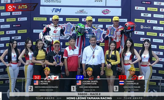 OtomotifZone.com – Sepang, Malaysia. Penampilan luar biasa ditunjukkan Khasma Daniel Kasymayudin pada Race 2 kelas Supersport 600 (SS600) Seri 1 Asia Road Racing Championship 2026 yang berlangsung Minggu (12/4) di Sirkuit Sepang, Malaysia. Start dari posisi lima tidak membuat pebalap asal Malaysia tersebut menyerah, bahkan dirinya berhasil meraih kemenangan secara meyakinkan.
