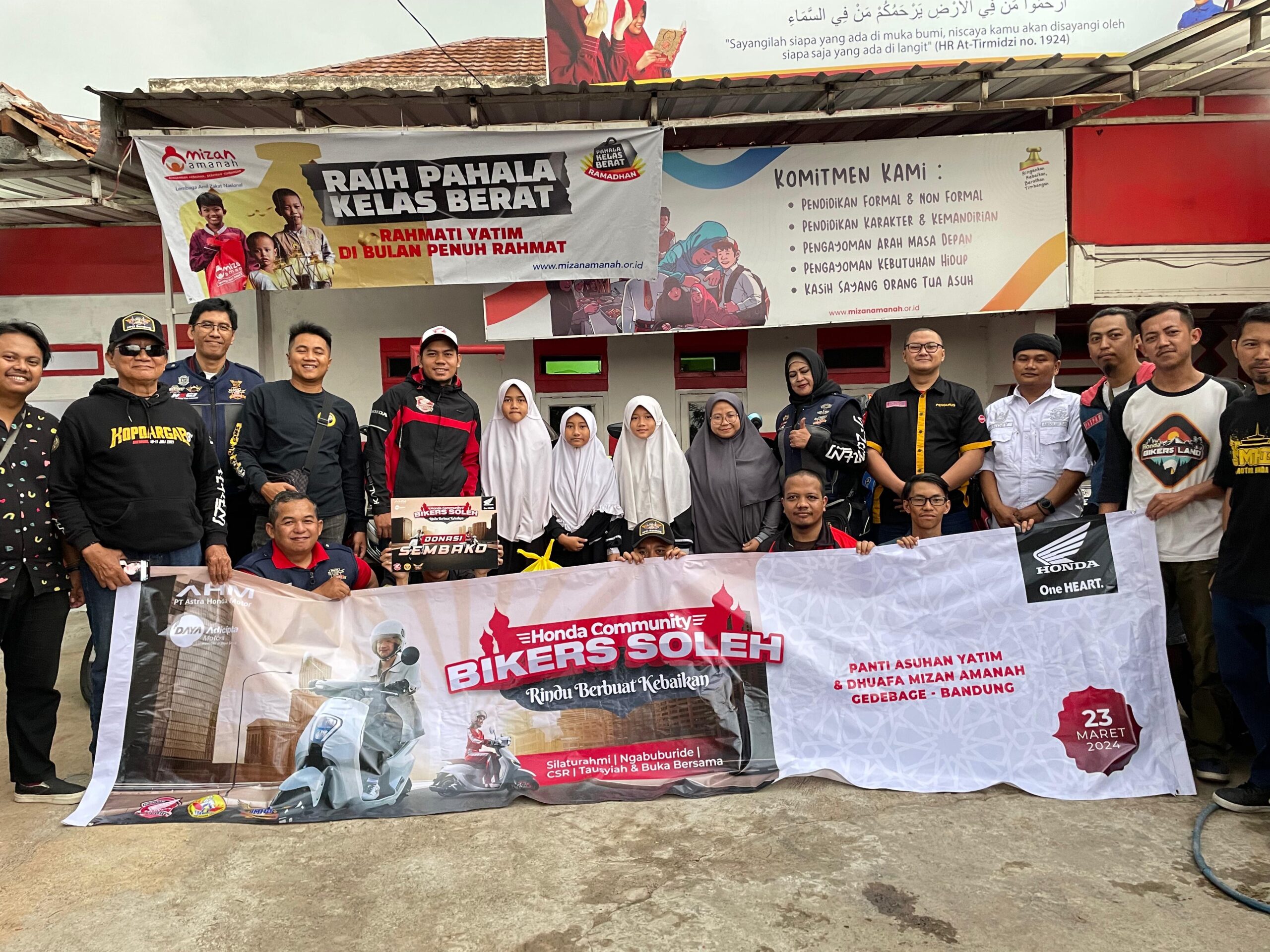Kegiatan yang diikuti oleh total 50 bikers yang berasal dari berbagai komunitas sepeda motor Honda ini dilaksanakan di Panti Asuhan Yatim & Dhuafa Mizan Amanah Gede Bage, Bandung Sabtu (23/3). Mengusung tema “Rindu Berbuat Kebaikan”, para bikers soleh bertujuan untuk berbagi kebaikan khususnya bagi sesama yang membutuhkan.