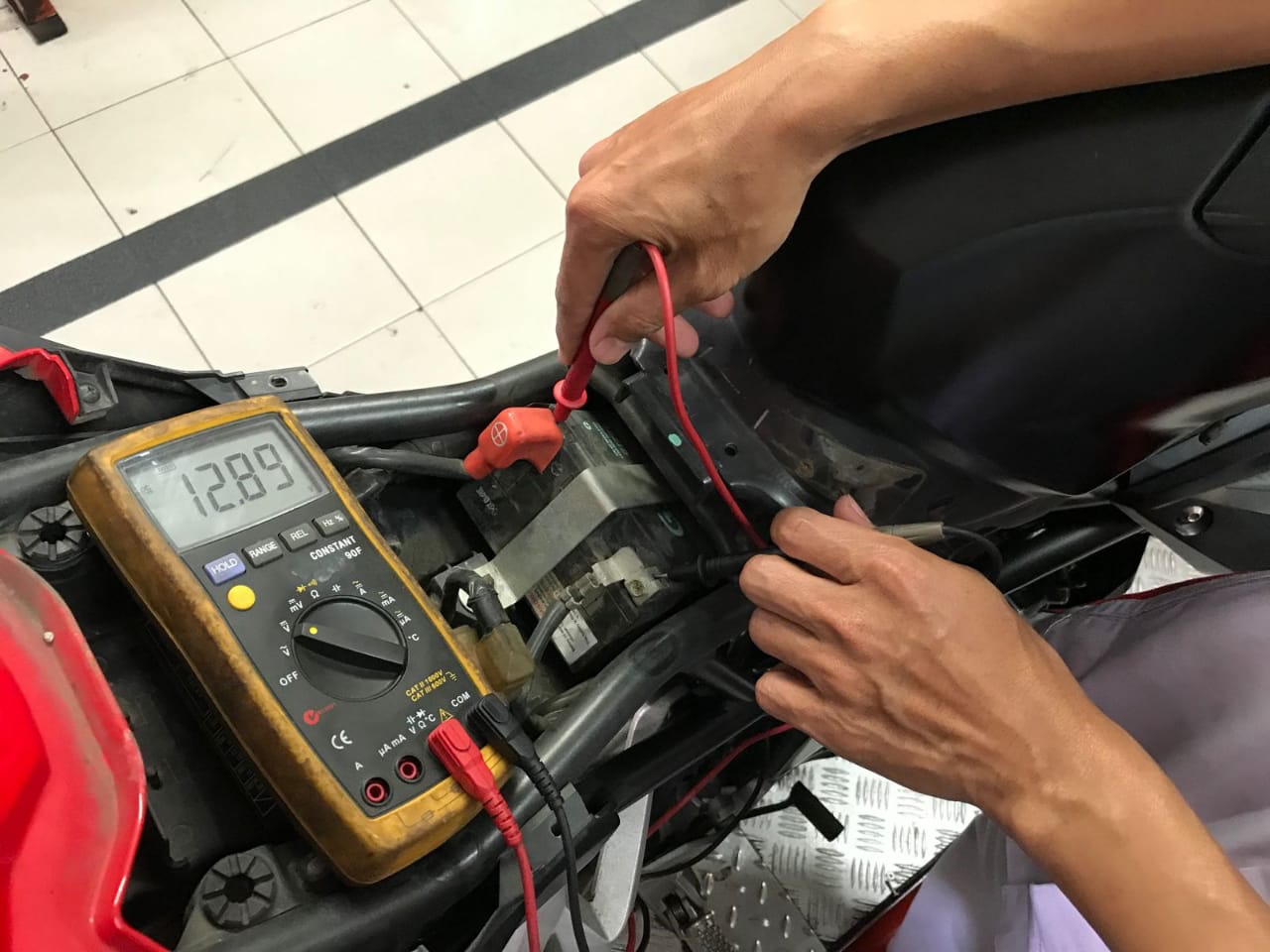 Untuk motor yang belum memiliki fitur monitor baterai, kamu bisa memeriksa tegangan baterai menggunakan multimeter.