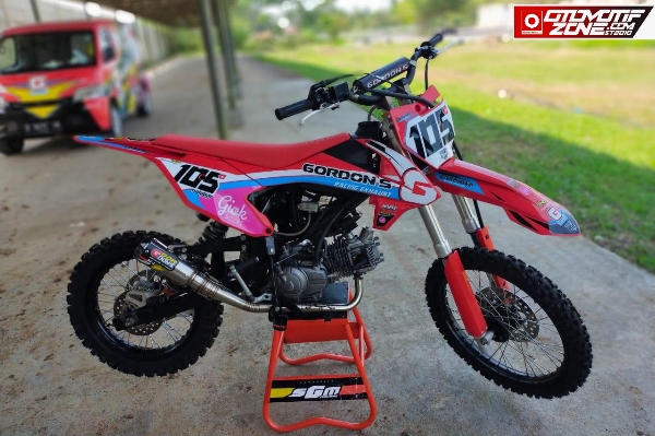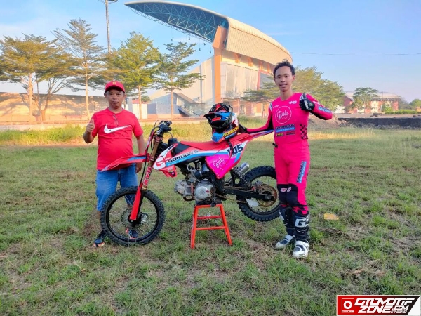 Melihat motor Rizky HK yang di pakai test kemarin sangat berbeda dengan yang sebelumnya. Kali ini Gordon’s memilih cover set KTM 85cc warna merah juga kaki-kaki “mahal”. Upside down dari KYB juga suspensi panjang ATV baru terpasang pada motor ini.