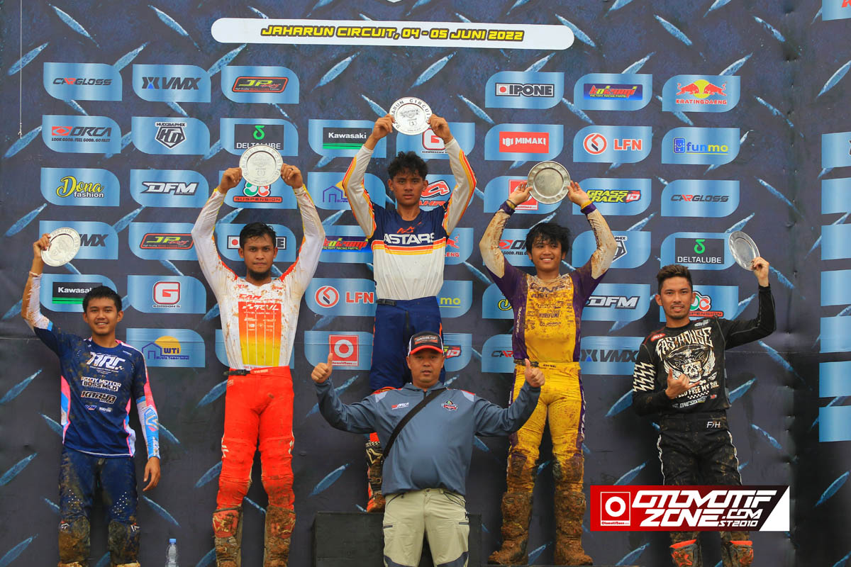 Setelah kita kupas para jawara kelas Open, kita beralih dikelas Junior. Seri 2 ini akhirnya menjadi milik Jepri Bule, pembalap Honda PT M Zul Gumelar Nyomot BKJU VMX MSP JKT ini mampu sapu bersih kelas JC05-Sport & Trail 2L 155cc & 4L 250cc Junior dengan point penuh, dan sabet posisi tertinggi moto 1 JC04-bebek Modifikasi 4L 125cc Junior, membuat pembalap Banten akhirnya mampu patahkan Bhelly Satriansyah asal Sumatera utara, setelah seri perdana seminggu sebelumnya mampu raih juara umum nasional kelas junior, dan seri 2 ini, tahta juara umum akhirnya diambil alih Jepri Bule meski harus menahan sakit engkel kaki saat berlaga.