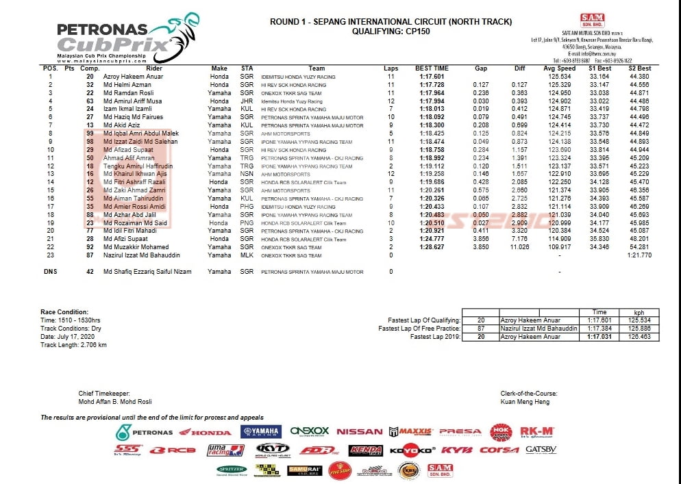 OtomotifZone.com – Malaysia. Putaran pertama Malaysia Cup Prix memang sudah berjalan (17-18/7/2020) di Utara Sepang Internasional Sirkuit, Malaysia. Yang mana melihat dari hasil kualifikasi, tim HI REV SCK HONDA RACING menepatkan tiga pebalap mereka masuk superpole CP150.
