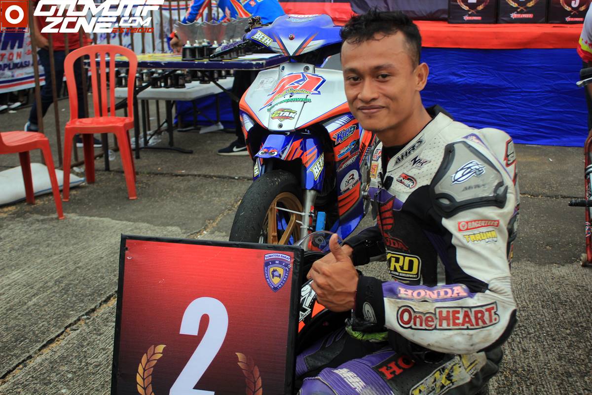Lalu di posisi kedua ada Dedi Saputra. Pebalap yang rela jauh jauh datang dari Kepulauan Riau ini memilih jenis ban IRC Fasti 2. Pebalap yang pernah menjadi Runer Up region Sumatera tahun 2015 ini tampil percaya diri diatas motornya. Dan dirinya berhasil duduk di podium kedua tercepat superpole dengan catatan waktu 50.715 detik.