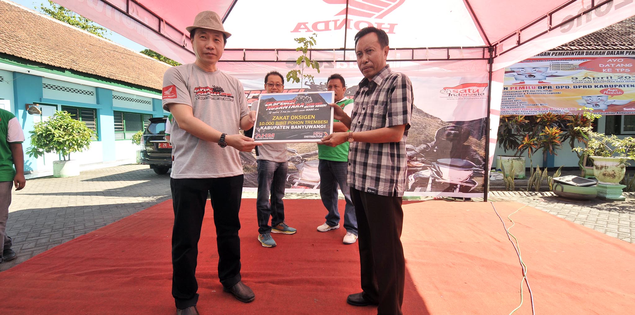 “Kami merasa senang bisa singgah di kota paling timur pulau Jawa. Apalagi sudah disambut dan diterima dengan baik. Dalam rangkaian kegiatan ini, tidak banyak yang dapat kami berikan kepada masyarakat Banyuwangi. Dan ucapan terima kasih juga kami sampaikan kepada MPM Motor yang sudah mensupport kegiatan ini dengan bersedekah oksigen berupa 10 ribu pohon Trembesi. Semoga sedikit yang kami berikan ini bisa bermanfaat bagi masyarakat Banyuwangi khususnya,” ujar Judhy Goutama, Senior Manager Brand Activation AHM dalam sambutannya.