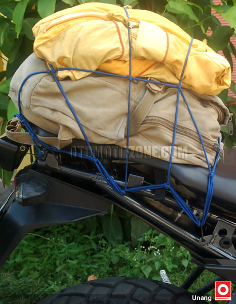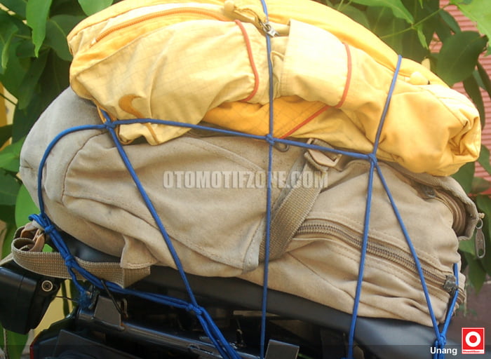 Letakkan rangsel agak kebelakang dan pastikan posisi anda saat duduk nyaman dan tidak terganggu bag net. Kebetulan saat ini lagi musim hujan, lebih sip lagi kalau rangsel atau perlengkapan touring anda di tutupi plastik hingga tetap kering dan tidak kecipratan air bila hujan. Lantas pakai bagnet dan pastikan pengaitnya masuk ke celah celah atau lubang di rangka motor. Selamat mencoba.