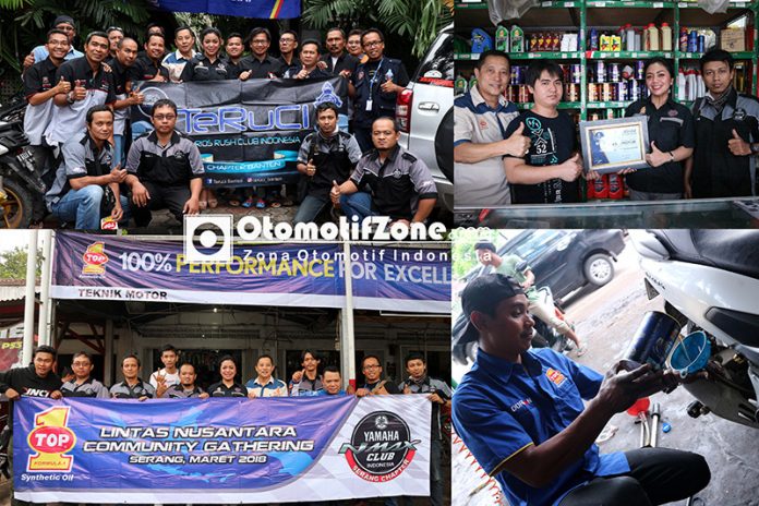 Otomotifzone.com – Banten. TOP 1 lintas nusantara berikan tips untuk penggantian oli bersama rekan komunitas roda 4 dan roda 2 di Serang, Banten, acara ini dilakukan di 2 bengkel diantaranta bengkel mobil Adikara Motor, Serang Banten bersama club Terios Rush Club Indonesia Chapter Banten (R4) dan untuk R2 dilakukan dibengkel Teknik Motor Serang bersama Yamaha N-Max Club Indonesia chapter Serang (24/3).