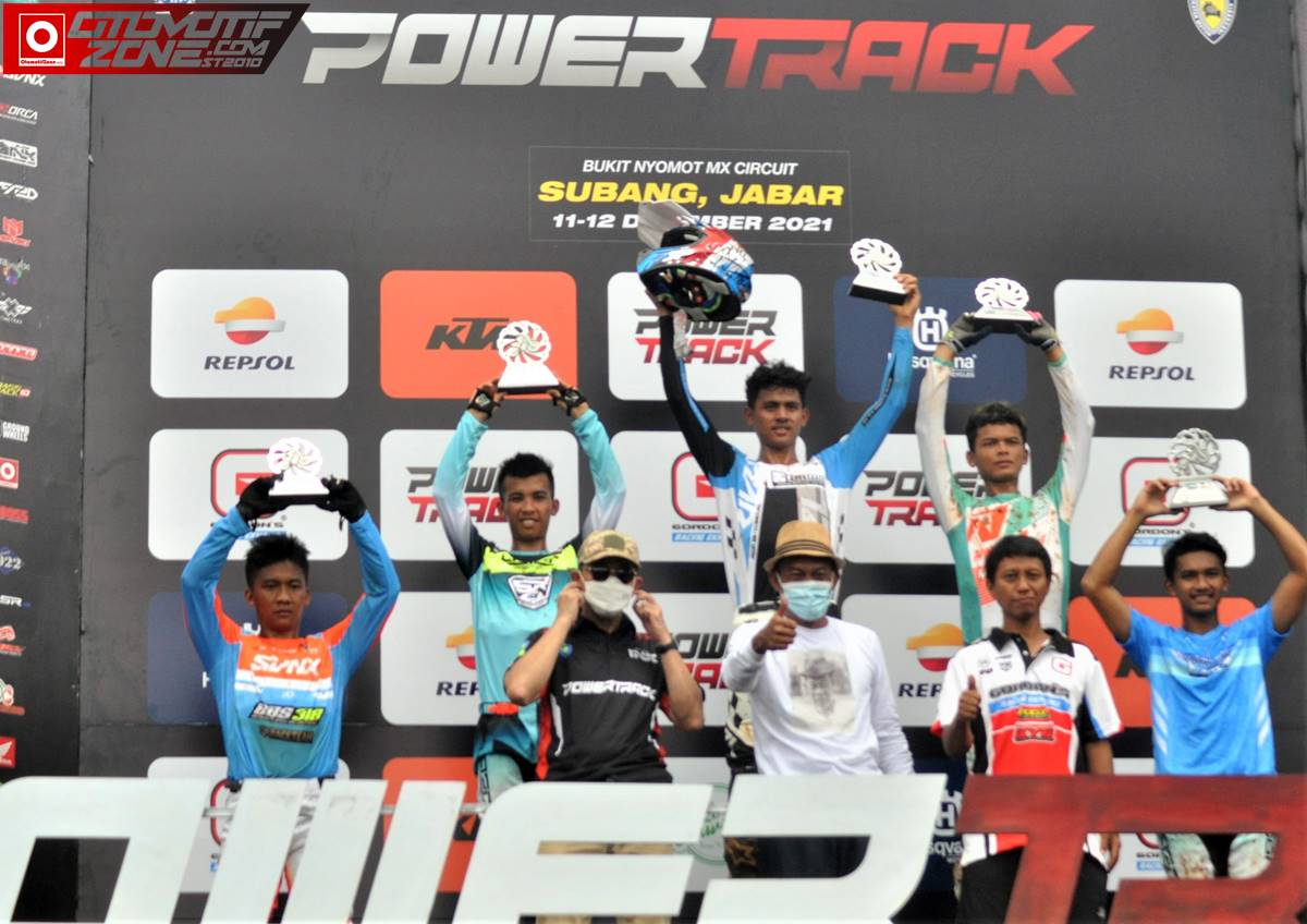 Nah dari sinilah, M Zulmi dari team Gumelar Nyomot yang menunggangi Honda CRF dengan dipersenjatai gas buang knalpot Proliner XR-1. Mampu mengumpulkan banyak point dan menjadi juara di kelas bergengsi yaitu Sport 4 Tak S/D 250CC. Bahkan saat mamasuk gerbang finish, M.Zulmi menunjukkan aksi spektakuler sambil jumping dia malakukan ‘akrobatik’ Untuk para jawara di Powertrack Final di panggung podium pembagian pialanya secara eksklusif langsung di sirahkan oleh Bupati Subang H. Ruhimat, S.Pd., M,Si. Buat semakin memberikan semangat para crosser yang datang dari penjuru Indonesia. Agar kedepannya, hajatan Powertrack akan terus terselenggara dan bisa melahirkan crosser-crosser muda berprestasi dan Go Internasional.
