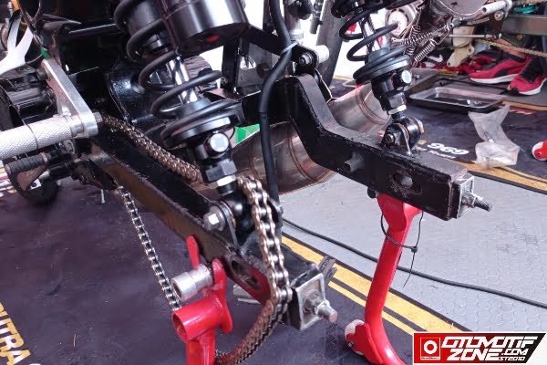 Swing Arm yang 20 tahun lalu menggemparkan kalangan road race tanah air, ketika Bima Octavianus bersama team Johnson Tepepa memakai motor Yamaha F1zR gawean Daytona Jepang seharga 129 Juta tersebut mengubah sisi kanan swing arm menekuk keatas demi memperlancar perut gembung knalpot yang mereka riset. Dan juga berguna meminimalisir gesekan perut ke aspal.
