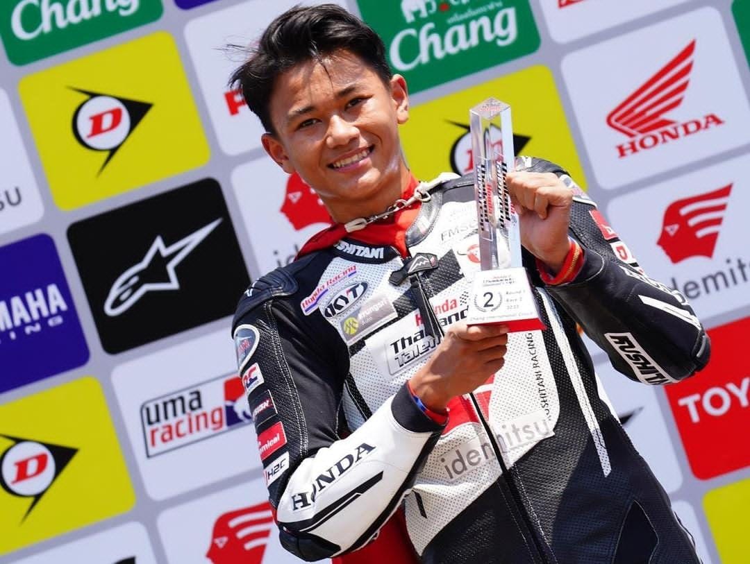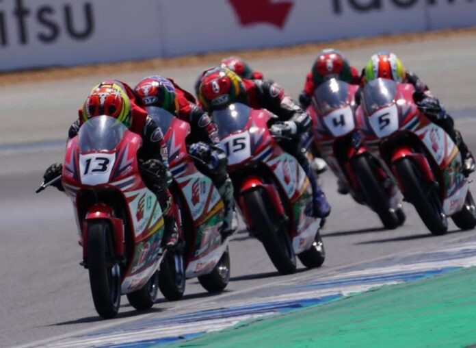 OtomotifZone.com – Jakarta. Penampilan luar biasa salah satu perwakilan Indonesia di Thailand Talent Cup 2023 putaran 1 (26/3/23) di Sirkuit Chang Internasional, Buriram, Thailand. Pebalap binaan Astra Honda ini tampil luar biasa dari race 1. Namun sayang, pada race 1 dirinya belum bisa menaiki podium di TTC. Padahal beberapa kali dirinya memimpin jalannya balapan. Baru di Race 2 anak dari Wawan Hermawan mantan pebalap Nasional Indonesia itu buktikan bahwa dirinya pantas dipanggung podium.