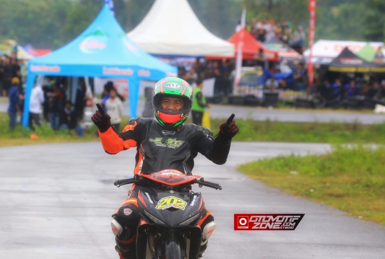 Nyali tinggi tanpa ditopang fisik prima, namun akhirnya bendera finish dikibarkan dan dirinya pembalap pertama yang menginjak garis finish dan didaulat menjadi juara dengan nama team 38 rob Imola Syndrome Otomotifzone.com hasil denda racing team, sebuah perpaduan nama team yang spektakuler tentunya.