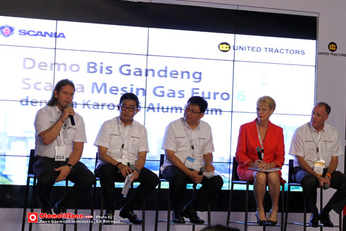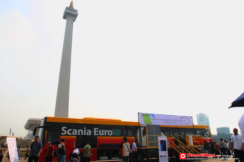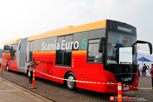 OtomotifZone.com-Jakarta. PT United Tractor (UT) yang merupakann perusahan kondang urusan transportasi dan alat berat, di parkir barat daya Monas Jakarta Kamis, 8 Mei 2014 memperkenalkan Bus gandeng merk Scania Euro 6 yang berbasis bahan bakar Gas kepada khalayak media.