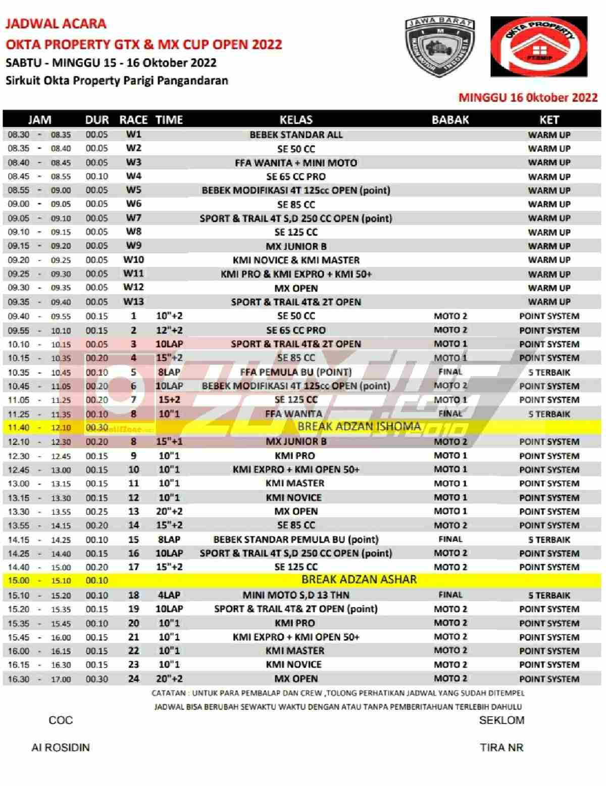 Kemudian mengingatkan, tim harus update jadwal gelaran grasstrack dari panitia, karena bisa saja terjadi perubahan jadwal tanpa pemberitahuan.