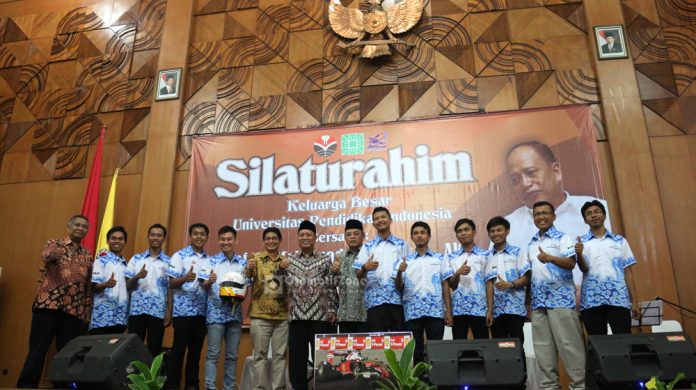 OtomotifZone.com-Bandung. Usai raih juara dunia di eropa dalam laga Shell Eco Marathon Driver’s World Championship yang dihelat pada tanggal 3 Juli 2016 di Olympic Park Queen Elizabeth London, tim Bumi Siliwangi dari Universitas Pendidikan Indonesia (UPI) yang tergabung dalam unit kegiatan Komunitas Mahasiswa Penggemar Teknologi Otomotif (KOMPETITIF), Hari ini (13/07) dalam acara Silaturahmi bersama Prof. H. Mohamad Nasir, Ph.D., Ak. selaku Menteri Riset, Teknologi dan Pendidikan Tinggi Mendapatkan perhatian yang sangat luar biasa dari semua jajaran universitas. Raihan ditingkat dunia yang mencengangkan tersebut mampu membuktikan bahwa UKM KOMPETITIF UPI mampu bersaing ditingkat dunia dan mendapatkan raihan yang sangat luar biasa dengan torehan gemilang Juara Dunia pertama Shell Eco Marathon Driver’s World Championship sebagai pendatang baru yang mampu menggebrak dunia dengan Turangga Chetta EV-3 sebagai kendaraan bersumber enegri listrik dari baterai.