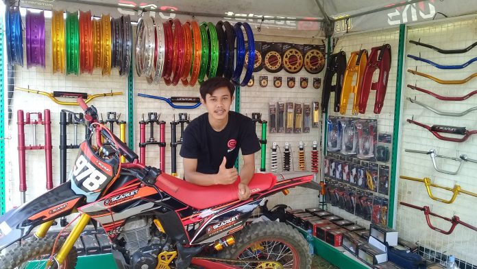 “Kebetulan di event kali ini kita support salah satu tim sekalian promosi langsung dengan produk Scarlet Racing dan Scarlet MX Series ini. Untuk alamat outlet kami ada di Jl. Kapuk Raya, No. 24 A, Kapuk, Cengkareng, Jakarta Barat,” jelas Ari yang asli Purbalingga, Jawa Tengah.