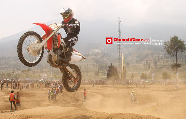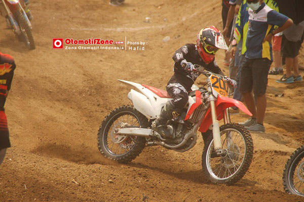 OtomotifZone.com-Wonosobo. Dibalik rampungnya seri Kejurnas Motocross Seri 6 – 2015 sirkuit Kledung, Wonosobo ada cerita yang membuat heran dunia Motocross Indonesia. Dialah Vernando Tulandi, bocah dari Minahasa Tenggara yang ikut kelas Mx Novice. Kagum dengan penampilannya saat Moto1 pagi hari. Apanya yang kagum? Dia kan baru pertama ikut Motocross di Jawa. Lagi pula postur tubuhnya sekitar 150cm! Saat start pun kakinya di bantu pakai kursi..