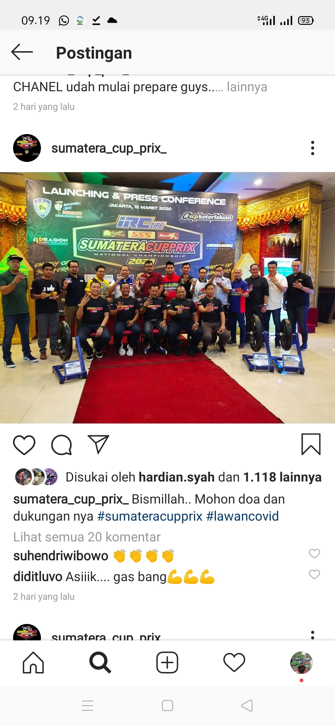 ” Bismillah, mohon doa dan dukungannya #sumateracupprix #lawancovid,” tulis caption akun media sosial Sumatera Cup Prix.