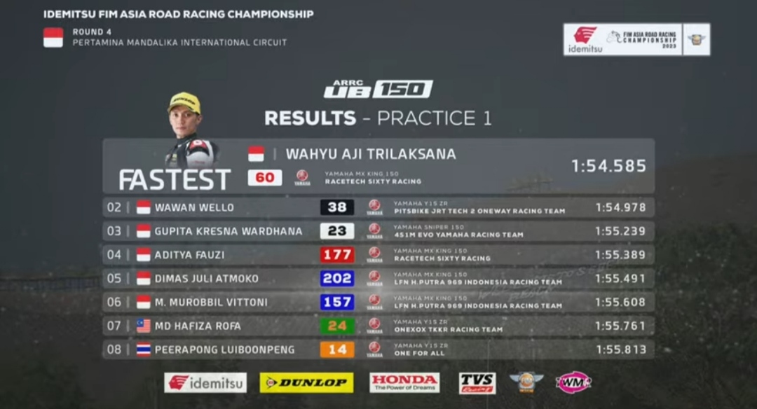 OtomotifZone-com-Mandalika. Hari pertama ajang Asia Road Racing Championship (ARRC) yang digelar di Mandalika, di kelas UB150 dua pembalap Indonesia, Wahyu Aji dan Wawan Wello, berhasil mencuri perhatian dengan penampilan luar biasa mereka di dua sesi Free Practice. Keduanya mampu menguasai sesi latihan bebas 1 dan 2, menunjukkan kemampuan dan potensi yang luar biasa di lintasan pada hari jum’at 11 Agustus 2023.