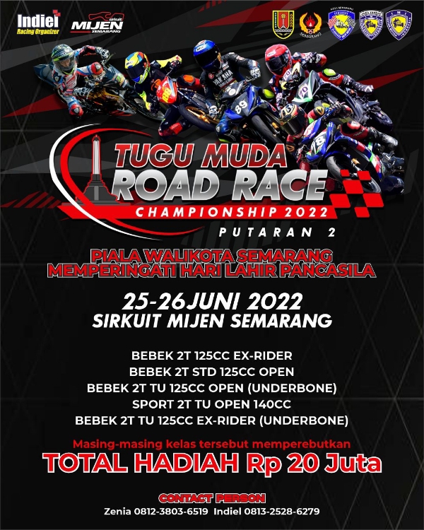 OtomotifZone.com-Semarang. Event Seri 2 Tugu Muda Road Race Championship sirkuit Mijen Semarang yang aslinya dilaksanakan pada 18-19 Juni 2022 dan di undur menjadi 25-26 Juni 2022 bukan masalah sepertinya bagi Indiel Racing Organizer. Karena terlihat mereka justru menambah kelas lagi dengan hadiah yang sama juga nominalnya di kelas bergengsi.