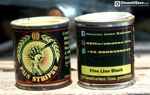 “Catnya kalau menurut saya harus dari luar, ini demi hasil berkualitas bagus. Susahnya cat dari luar negri nggak bisa ditimpa cat lain atau clear. Nah saya cari solusinya dan bikin cat sendiri yang bisa ditimpa clear polyurenthanne. Tentunya ada trial dan erornya juga dan setelah berhasil ramuan ini saya namakan Paint Striper,” ujar Wawan di studionya jl Krakatau 2 no 27 Semarang