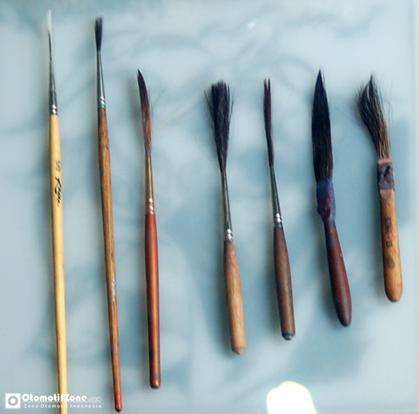Pirantinya juga nggak sembarangan, seperti cat dan kuas adalah produk luar negeri. Cat misalnya bagi Wawan Bakwan lebih memilih Enamel yang memang sudah terbukti kualitasnya. Kuasnya pake label Kavka dan Mack bikinan Amerika. Kuas ini tidak sembarangn dan berbeda dengan lazimnya karena kuas tersebut fungsinya mempermudah saat tangan beraksi.