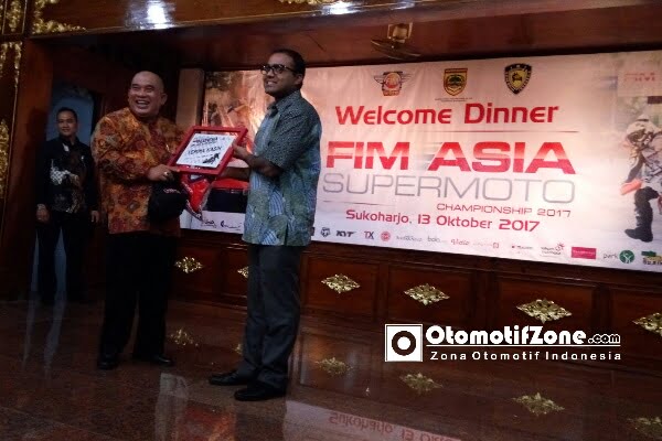 OtomotifZone.com-Sukoharjo. Malam ini (13/10) sehari sebelum race Seri 2 FIM Asia Supermoto 14-15 Oktober 2017 on sirkuit The Park Solo Baru panitia acara menggelar acara jumpa pers di pendopo kabupaten Sukoharjo dalam jamuan malam bertuliskan Welcome Diner FIM Asia Supermoto Championship 2017.
