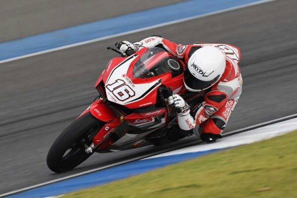 OtomotifZone.com-Thailand. Cah Magetan, Jawa Timur ini hari terakhir pada test resmi Asia Road Racing Championship sirkuit Chang, Buriram, Thailand 28 Feb 2018 merengsek ke posisi ketiga! Catatan waktunya pun bisa di katakan baik mampu di barisan tiga besar sebagai pembalap yang baru pertama kali ikut langsung di kelas Asia Production 250cc. Torehan waktunya fantastis mencatat 1 menit 53,733. Punya gap 0,552 dari Muklada Sarapuech dengan waktu 1 menit 53,181s sebagai best rider tak lain tuan rumah juga sebagai momok sirkuit ini. Apalagi lima besar isinya Thailand semua. Ngeri…
