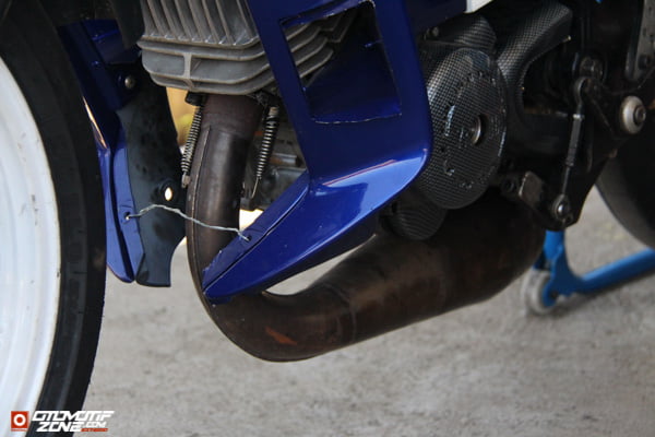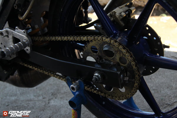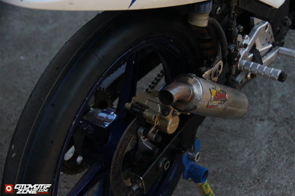Dinding silinder juga pastinya buat ramuan sendiri. Jalur keluar ke pembuangan lebar dibuat 42mm dan tingginya pun dibuat jadi 25,8. Pusing kan lu nggak liat langsung.. Penting ini ramuan Antok Fastech. Rasio juga ikut di jelaskan disini. Gearbox Yamaha 125z Willy di setting 15/30, 21/31, 20/25, 22/24, 23/23, 27/25. Pengapian di percayakan memakai CDI motocross merk Vortex. Dan terakhir dari bagian permesinan yaitu part gas buang mempercayakan knalpot buatan Jogja yaitu SMR Muffler.