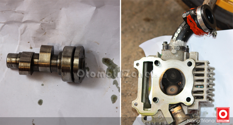 Lalu di sekitar head untuk membuat flow lebih deras dan memperlancar gas buang, klep ganti dengan klep Honda sonic yang berdiameter in/ex 26/23mm di dukung perklep AHRS di ikuti durasi buka tutup klep isap 276° buang 275°. “Desain head di buat dengan bentuk bathtub dan penggunaan seher Kawahara 52mm yang mempunyai dome tinggi,” sambungnya.