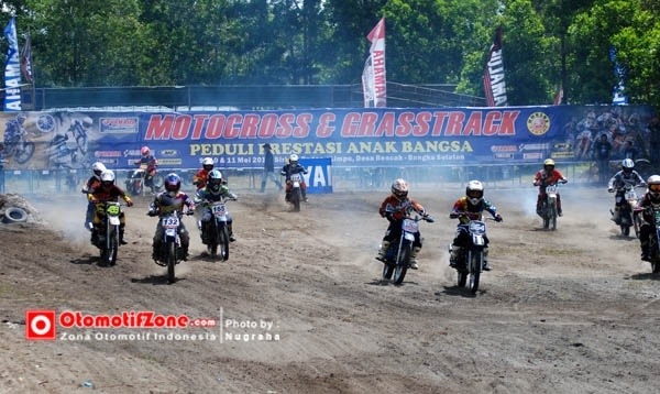 OtomotifZone.com – Bangka. Gelaran paling bergengsi di tahun 2014, dalam kejuaraan Motocross (MX) dan Grasstrack (GTX) khusus Yamaha di Bangka Belitung (Babel), direspon baik hingga menyedot 200 starter. Dibagi dalam 13 kelas yang tersaji, dengan menggusung titel Yamaha Motocross & Grasstrack Peduli Prestasi Anak Bangsa, pada (10-11/5) disirkuit Padang Limpu, Desa Bencah Basel, Bangka Belitung. Persembahan dari CV Sumber Jadi, Main Dealer Yamaha Bangka Belitung, tentunya yang dikemas apik oleh E.O YMBC (Yamaha Motor Bangka Belitung Club) sehingga menjadikan event penuh gebyar dan berkualitas.
