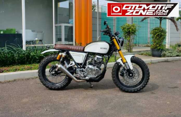 Biar nampak beda, kelir bodi seperti tangki, cover bodi dan sepatbor dibalur dengan warna putih dan bukan hitam seperti kebanyakkan modif custom pada umumnya. Sehingga kesan bersih dan rapi makin terlihat jelas di bodi Kalajengking Scrambler ini.