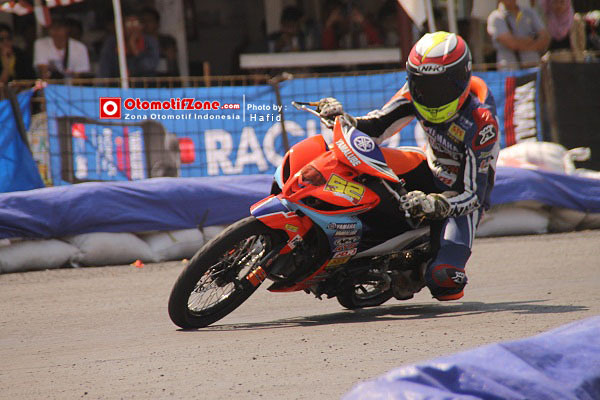 OtomotifZone.com -Jogja. Satu dari dua Z1 yang bertanding di Kejurnas Motoprix kelas 125cc alias MP1 adalah milik Yamaha Z1 team Yamaha Yamalube NHK KYB FDR SSS FIM Ardian’s Putra Anugrah milik Fritz Yohanes . Tapi kalau kita tahu tingkat setting motor ini belum ada apa-apanya di banding Z1 Syahrul Amin yang risetnya jauh memimpin sejak awal tahun 2015. Baru 2 bulan berjalan beberapa podium sudah diraih. Satu bulan ini podium 2 MP jogja dan terakhir juga podium 2 di YCR Cirebon. Menerapkan jurus apa Pak Dhe Heru Kate kali ini.