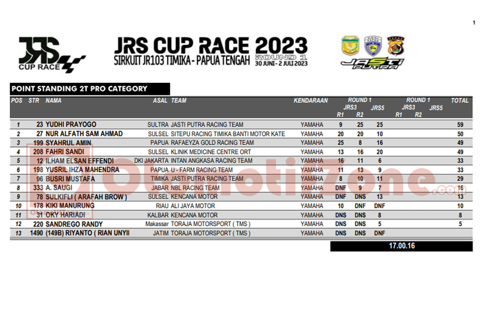 OtomotifZone.com – Timika. Selesainya perjalanan dari Jasti Putra Racing Series 2023 Putaran 1 di Sirkuit JR103, Timika akhir pekan kemarin (1-2/7/2023). Menjadi awal untuk para rider bersama tim. Untuk menata putaran selanjutnya dari sesi gelaran JRS Cup Race 2023 Seri 2 Desember nanti.