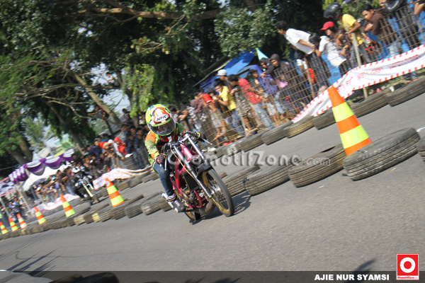 Beda tipis sebetulnya dengan Ayip Rosidi yang juga asli Karawang dengan waktu 7,307 detik. “Kita para pembalap menginginkan waktu terbaik mas, tapi kalau kondisi trek yang seperti ini pusing juga konsentrasi terpecah antara fokus dengan motor dan trek,” kata Yudistira Jebir dari tim SYS Yong Motor. “Apalagi dengan jalur pengereman yang kurang lebih 150 meter kurang. Ya harus buru2 menginjak rem sedalam-dalamnya biar tidak nabrak dengan pembatas akhir,” tambahnya kepada OtomotifZone.com.