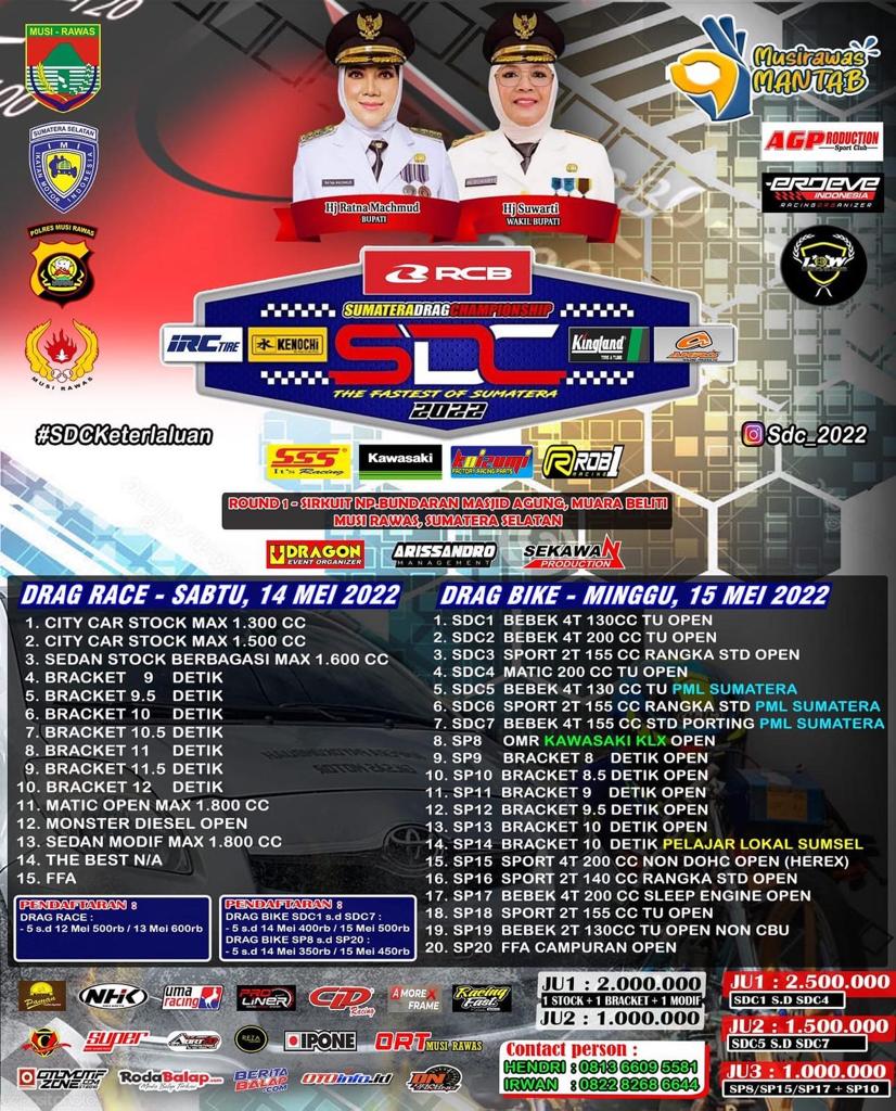 OtomotifZone.com – Musirawas. Gelaran Sumatera Drag Race Championship putaran pertama akhirnya memunculkan titik terang. Yang mana gelaran ini akan digelar (14-15/5/22) di Sirkuit NP Bundaran Masjid Agung , Muara Beliti, Musirawas, Sumatera Selatan. Dua event akan menjadi icon event ini. Yang mana gelaran Drag Race dan Drag Bike akan berlangsung pada tempat yang sama.