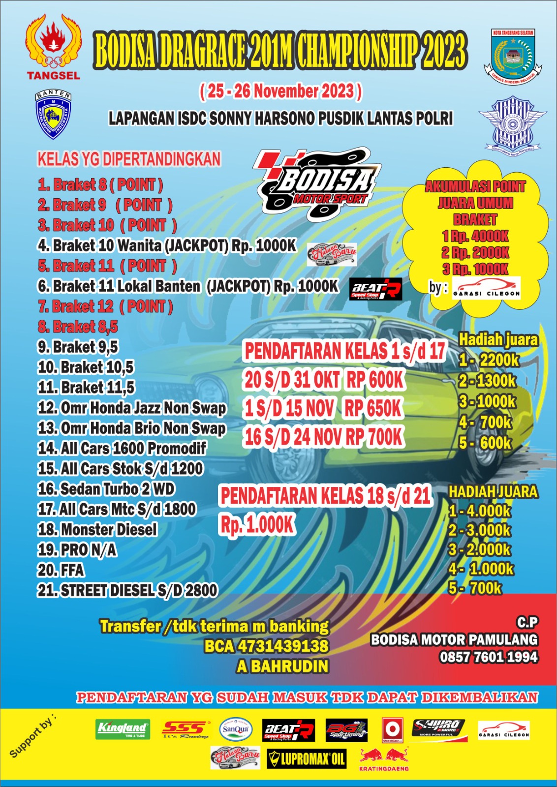 OtomotifZone.com – Tangerang. Tentu saja, Bodisa Drag Bike dan Drag Race merupakan acara balap yang sangat dinanti-nantikan oleh para penggemar balap motor dan juga para pecinta adrenalin. Pergeseran lokasi ke Sirkuit NP Lapangan ISDC Sonny Harsono Pusdik Lantas Polri, yang dekat dengan Alam Sutera, akan memberikan nuansa baru bagi gelaran Bodisa.