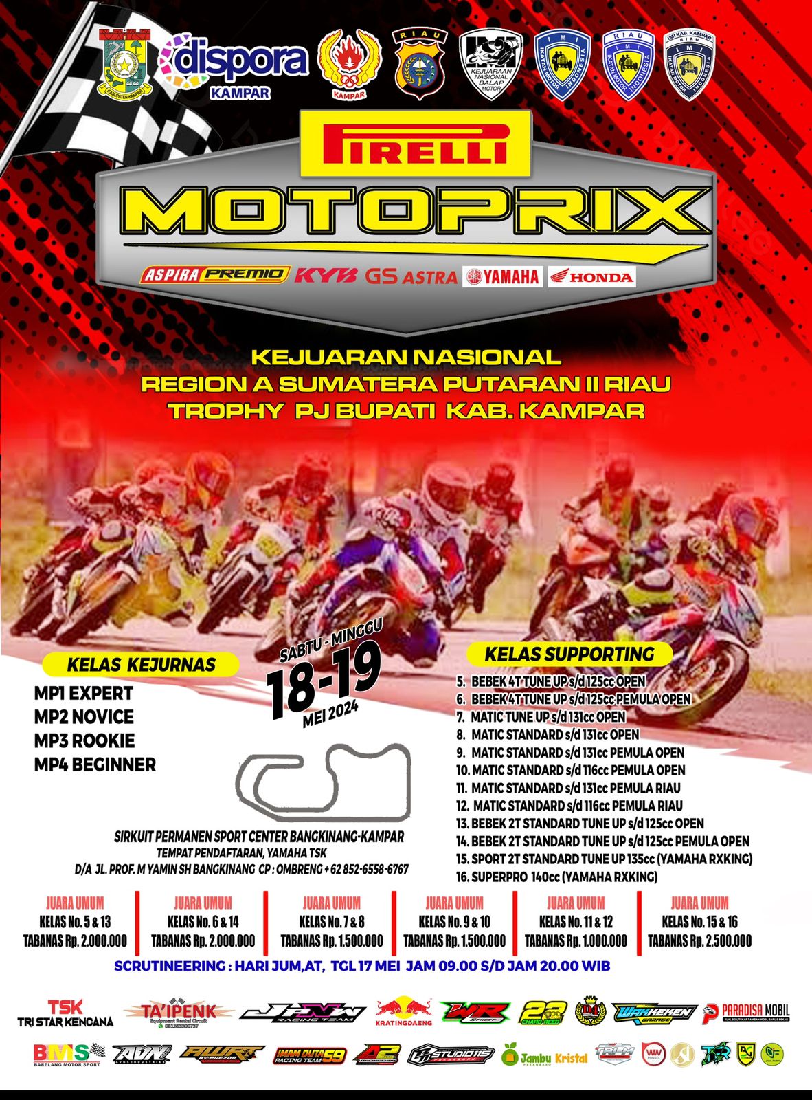 OtomotifZone.com – Pekanbaru. Tinggal menghitung hari gelaran Kejurnas Motoprix Region A putaran 2 yang akan berlangsung (18-19/5/24) di Sirkuit Sport Center Bangkinang, Riau. Pada gelaran ini prediksi sangat seru. Karena semua pebalap baru akan memasuki babak kedua. Yang mana mereka semua masih memiliki kesempatan untuk meraih Juara Region 2024.